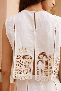 DETAILS AND INSIGHT Alemais rosemary embroidered top in cream. 66% Linen 34% Viscose Hand Wash Made In China Style 6089T-MULTI