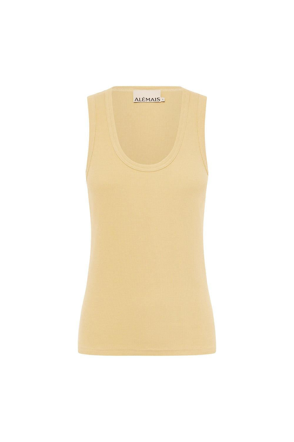 DETAILS AND INSIGHT Alemais sunlit tank top in yellow. 78% Cotton 22% Sorona Hand Wash Made In China Style 4855T-YELLOW