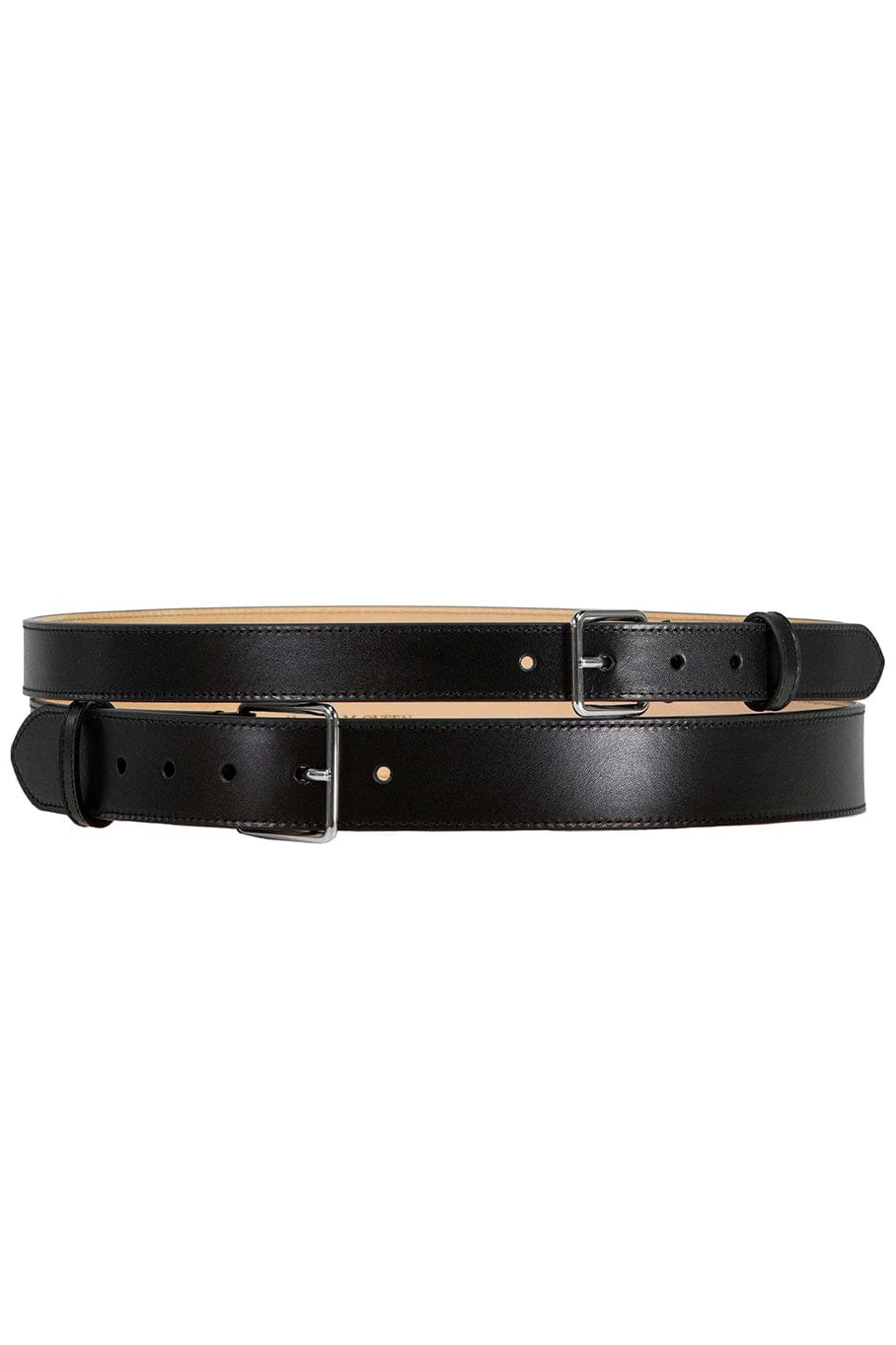DETAILS AND INSIGHT Alexander Mcqueen double long belt in black. 100% Leather Made in Italy Style 5941881BR0I