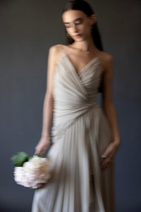 DETAILS AND INSIGHT Alexandre Vauthier long pleated dress in sand. 100% Polyester Dry Clean Made in Italy Style 222DR1660
