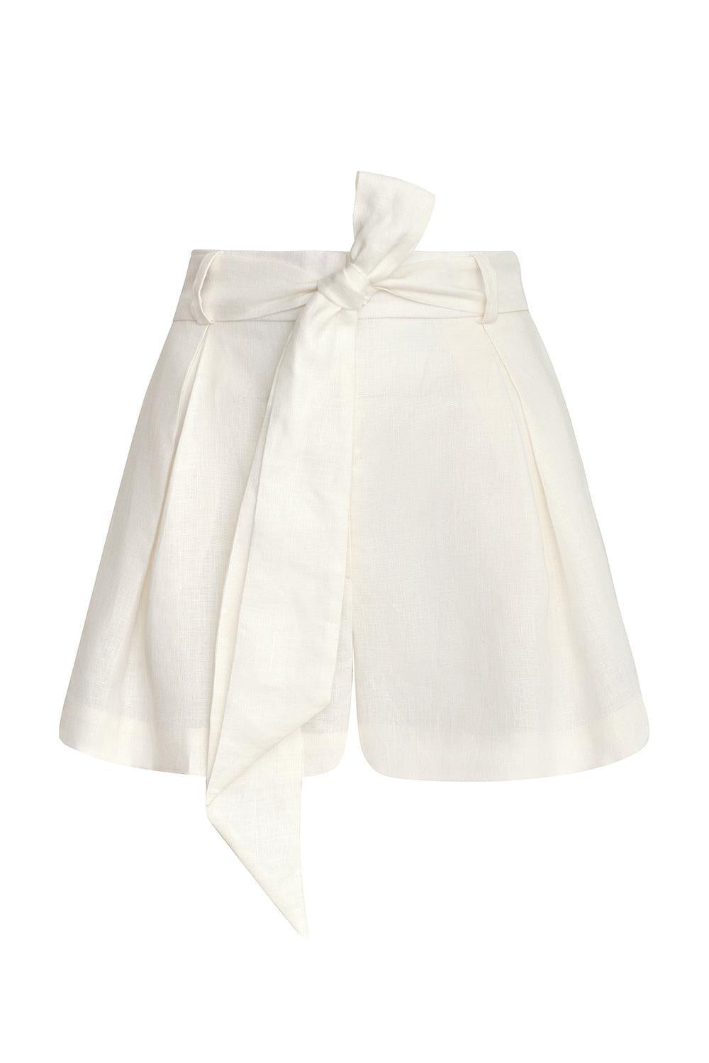 Encantamiento Natural Belted Linen Shorts off-white