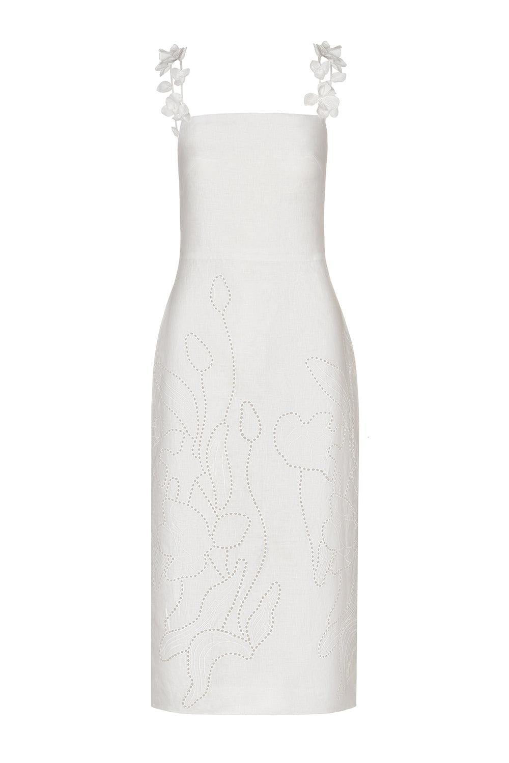 Petalos embroidered linen midi dress Off-white