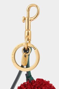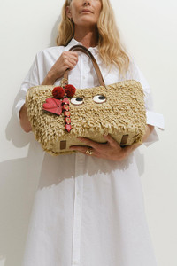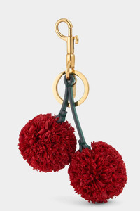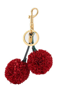 DETAILS AND INSIGHT Anya Hindmarch charm cherries in red. 100% Cowhide, 100% Raffia 4 L X 9 W X 13 H Made In Madagascar Ships by April 14 Style 5050925197304-RED