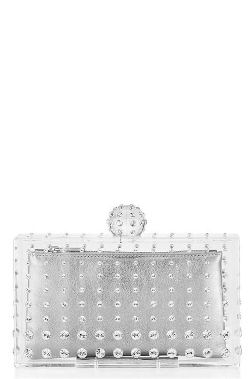 DETAILS AND INSIGHT Aquazzura tequila clutch in palladium transparent. RESIN/NAPPA LAMINATA/STRASS/BRASS Length: 4.3in x Width: 7.5in x Depth: 1.8in Fits Iphone 15 Pro Max Made in Italy Style TQLCLUC0-RNS - PTC