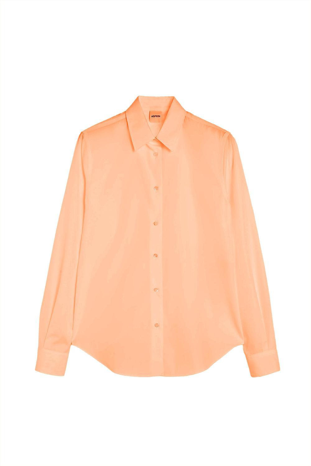 DETAILS AND INSIGHT Aspesi long sleeve mod shirt in orange. 100%Li Hand Wash Cold Made In Ro Style S5_G_5422_C195_85025