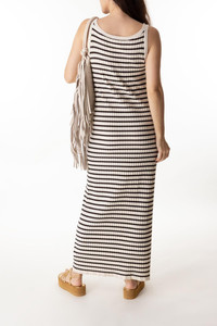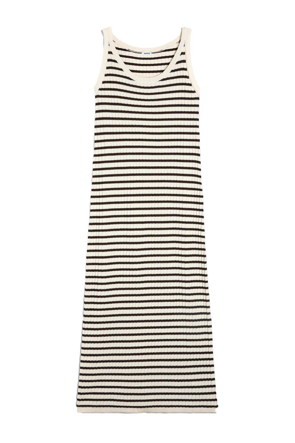 DETAILS AND INSIGHT Aspesi sleeveless striped long dress in multi. 100% cotton Dry clean Made in CN Ships by April 14 Style S5_P_3601_M068_20502
