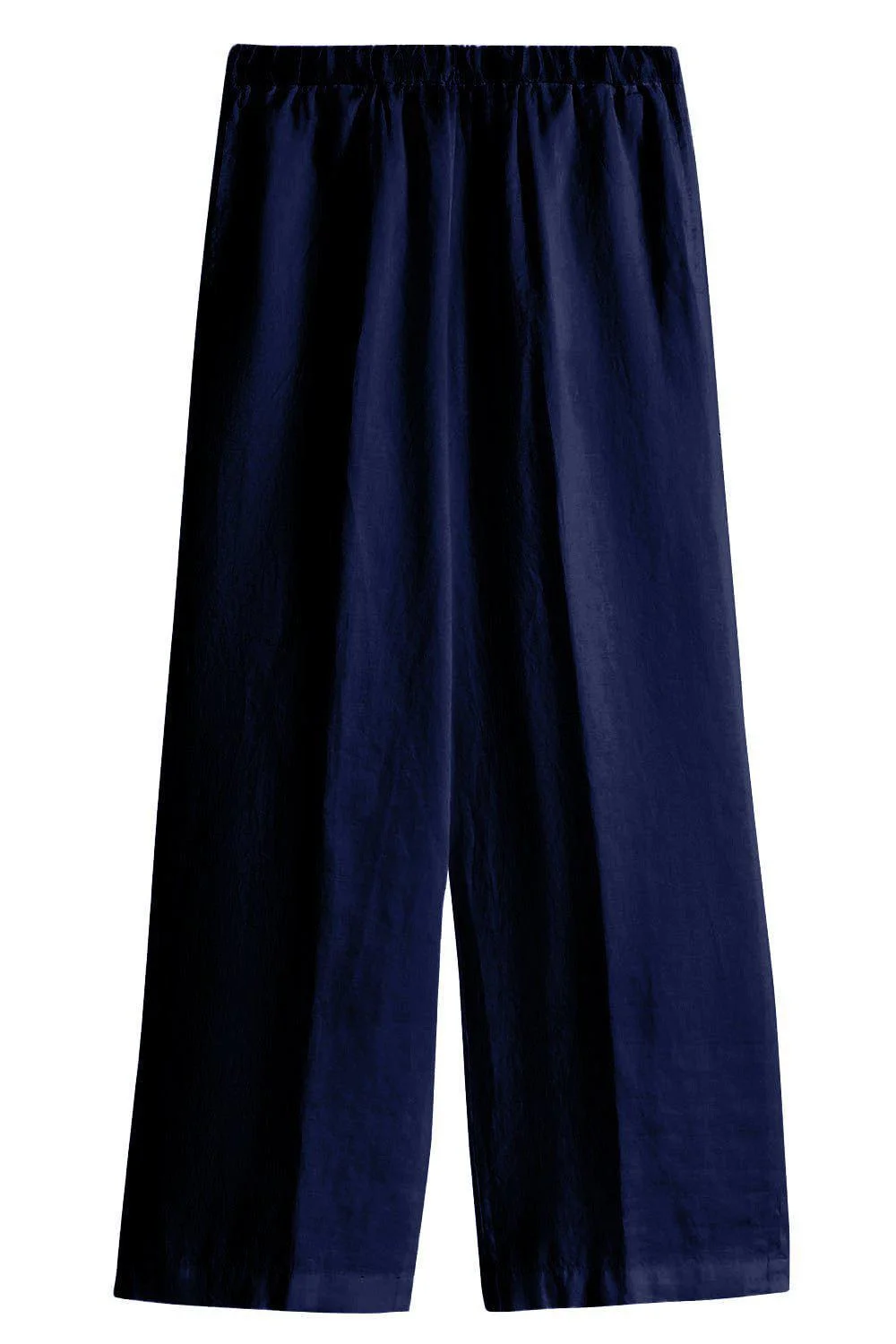 DETAILS AND INSIGHT Aspesi wide straight leg trousers in navy. 100% Linen Dry clean Made in Italy Style S4-G-0128-C195-85098