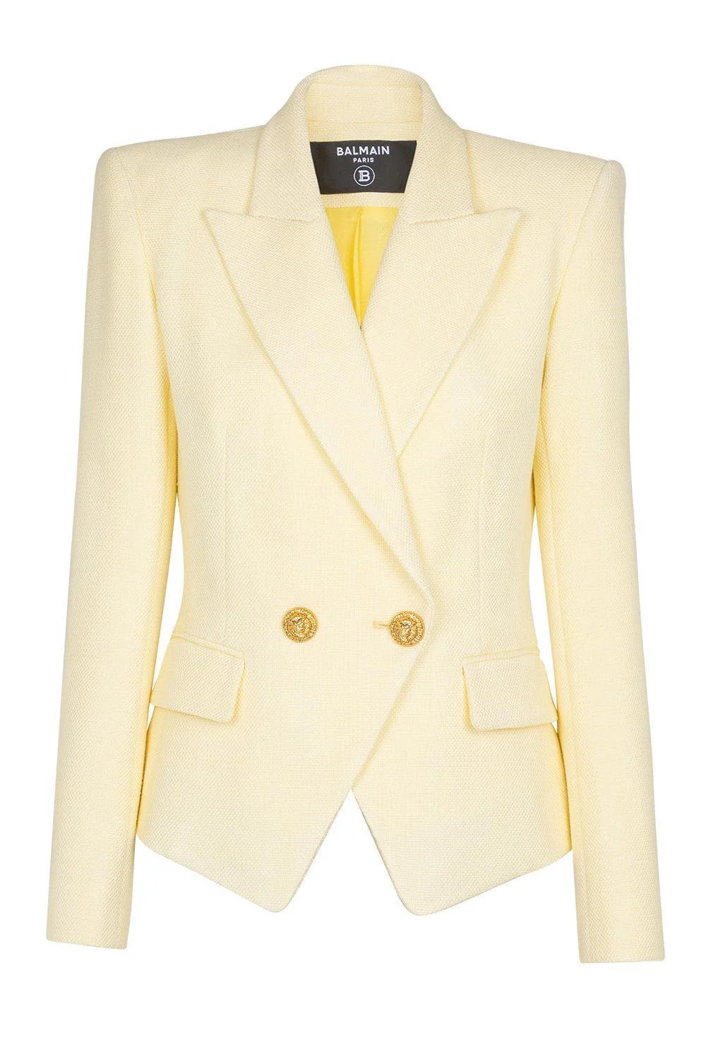 DETAILS AND INSIGHT Balmain button natte jacket in jaune pale. Main Fabric: 100% Viscos, Lining: 52% Viscose; 48% Cotton, Lining: 52% Viscose; 48% Cotton Professional Clean Made In Bulgaria Style GF1SI650VI58-1GD
