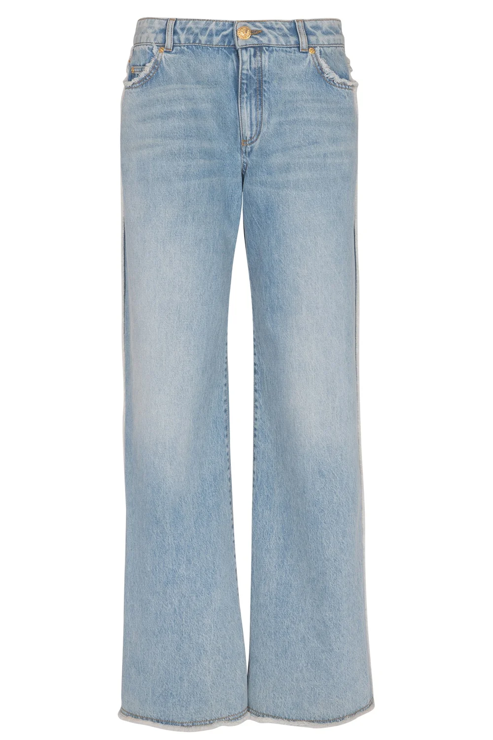 DETAILS AND INSIGHT Balmain raw edge straight jeans in 6fc. 65% Polyester ; 35% Cotton Professionally Clean Made In Romania Style EF0MI050DF75-6FC