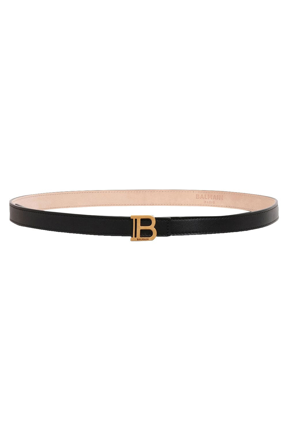 DETAILS AND INSIGHT Balmain thin b belt in noir. Adjustable Closure. Gold Tone Metal Monogram buckle. 2cm 100% Leather Made in Italy Style YN1WJ000LVTL-OPA