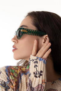 DETAILS AND INSIGHT Bottega Veneta oval sunglasses in green/green. Bio Nylon, Recycled Acetate 100% UV Protection 51mm x 21mm x 140mm Style BV1322S-003