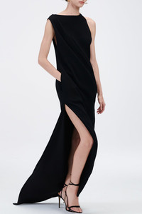 DETAILS AND INSIGHT Brandon Maxwell alina dress in black. 100% WV DRY CLEAN Made in USA Ships by August 14 Style DR631PF24-BLACK