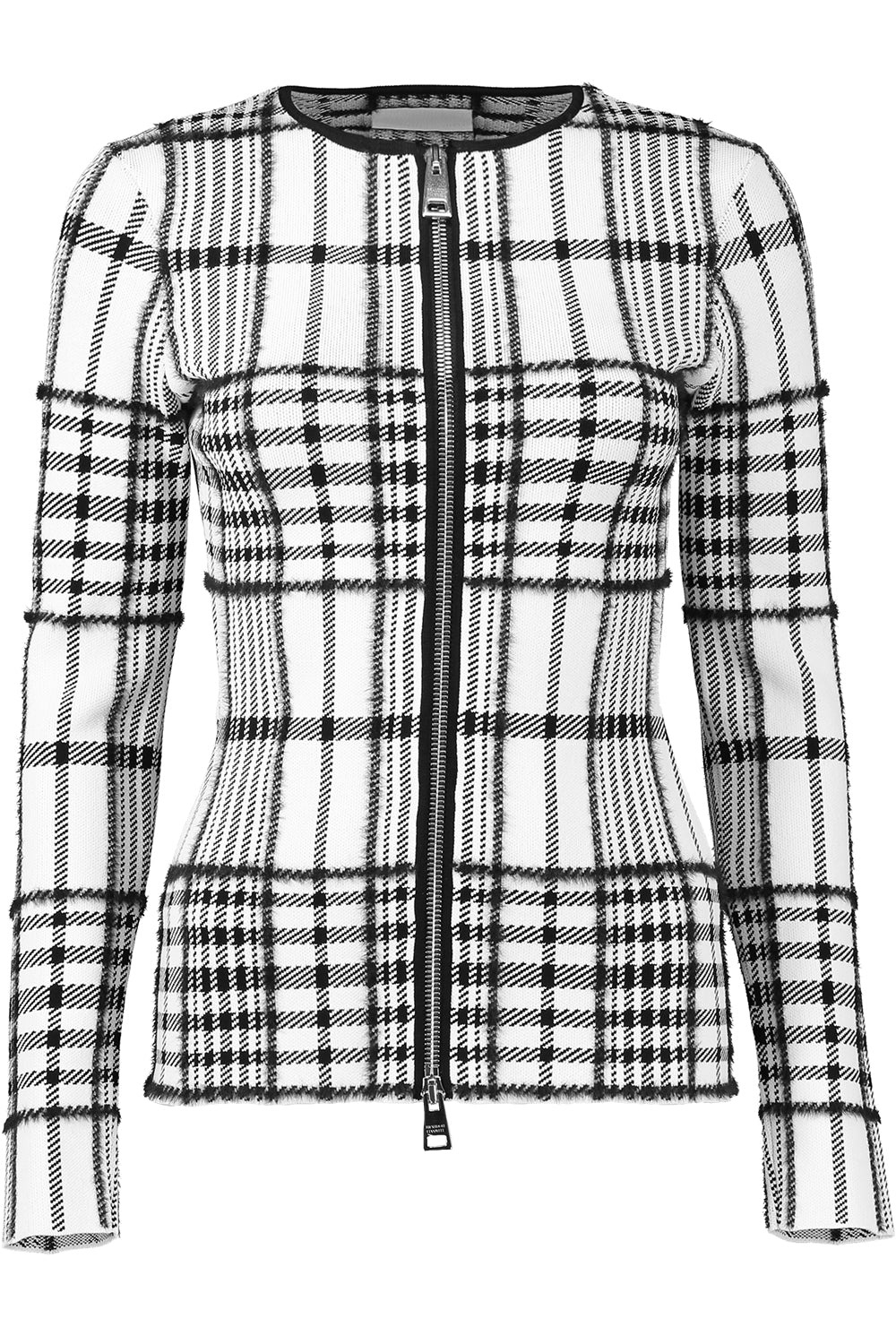 The Greer Zip Front Knit Cardigan in Ivory Plaid