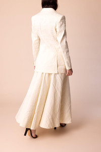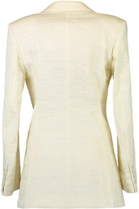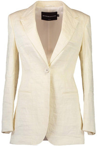 DETAILS AND INSIGHT Brandon Maxwell the jemma jacket in greige. Self: 73% LI, 23% PA, 4% EA, Lining: 65%AC 35% PL Dry Clean Made in Italy Style JK210SS24-GREIGE