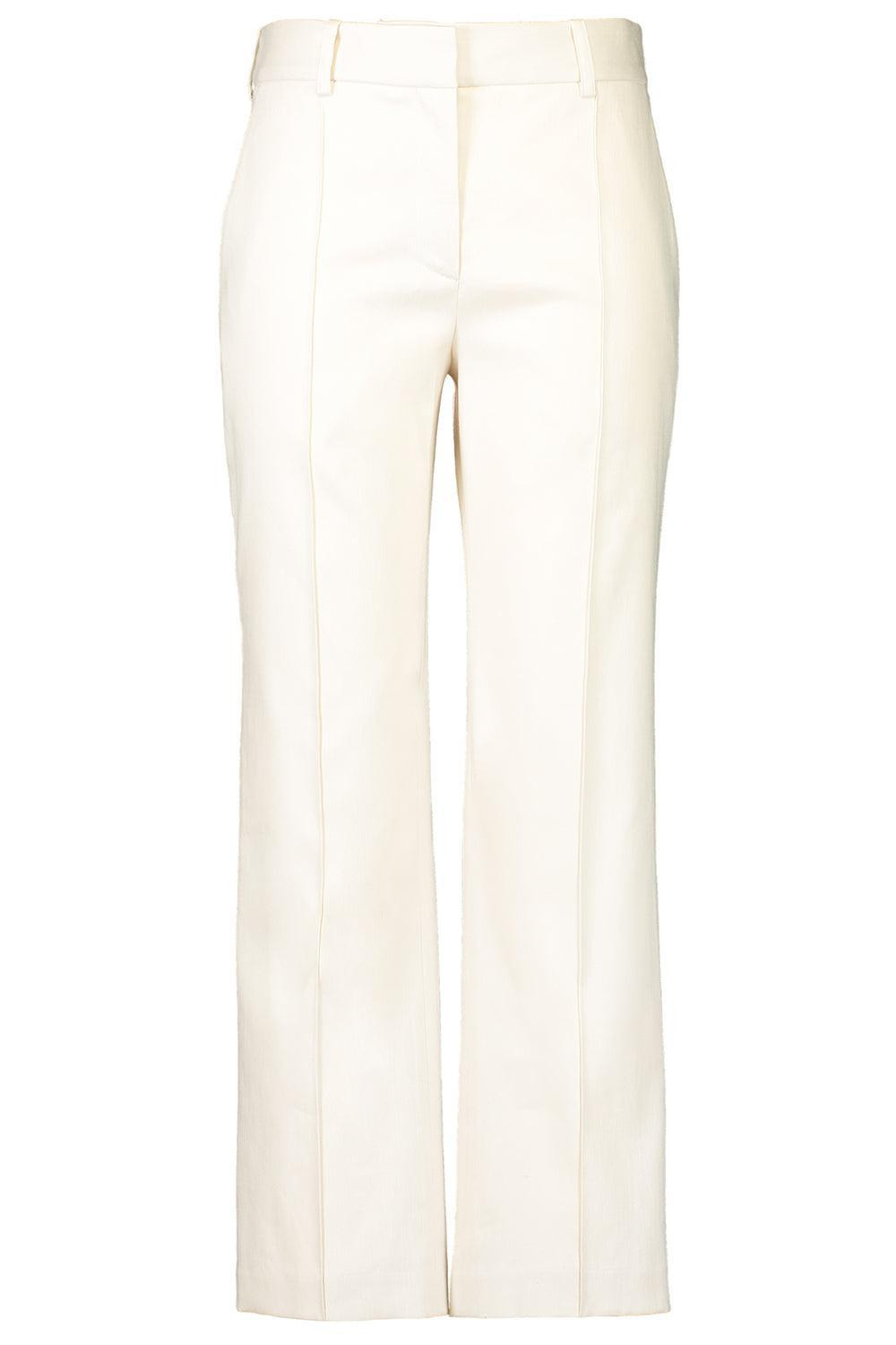 DETAILS AND INSIGHT Brandon Maxwell the soren trouser in ivory. 56% LI, 41% CO, 3% EA DRY CLEAN Made in USA Style PT247PS25-IVORY