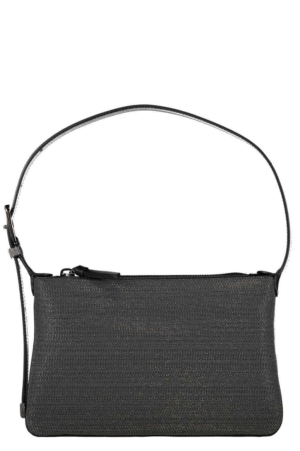 DETAILS AND INSIGHT Brunello Cucinelli bc duo shoulder bag in black. Monili, Brass, Leather Zip Closure, One Card Slot 12.60 x 2.56 x 5.51" Fits Iphone 16 Pro Max Made in Italy Style MBMON2668-C2355