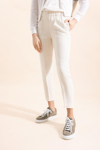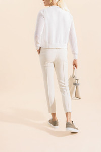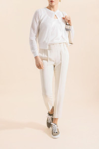DETAILS AND INSIGHT Brunello Cucinelli classic pull on pant in chalk. 52% Ac 48% Se, 65% Ac 35% Pl Dry Clean Made In Italy Style MA029P1673-C8525