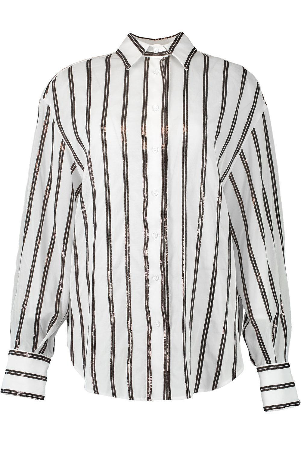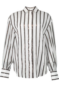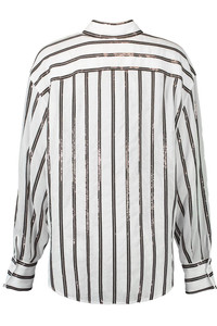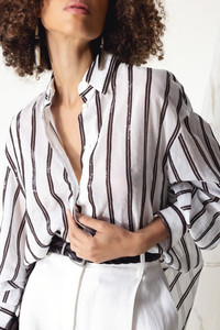 Cotton organza shirt with dazzling stripe embroidery