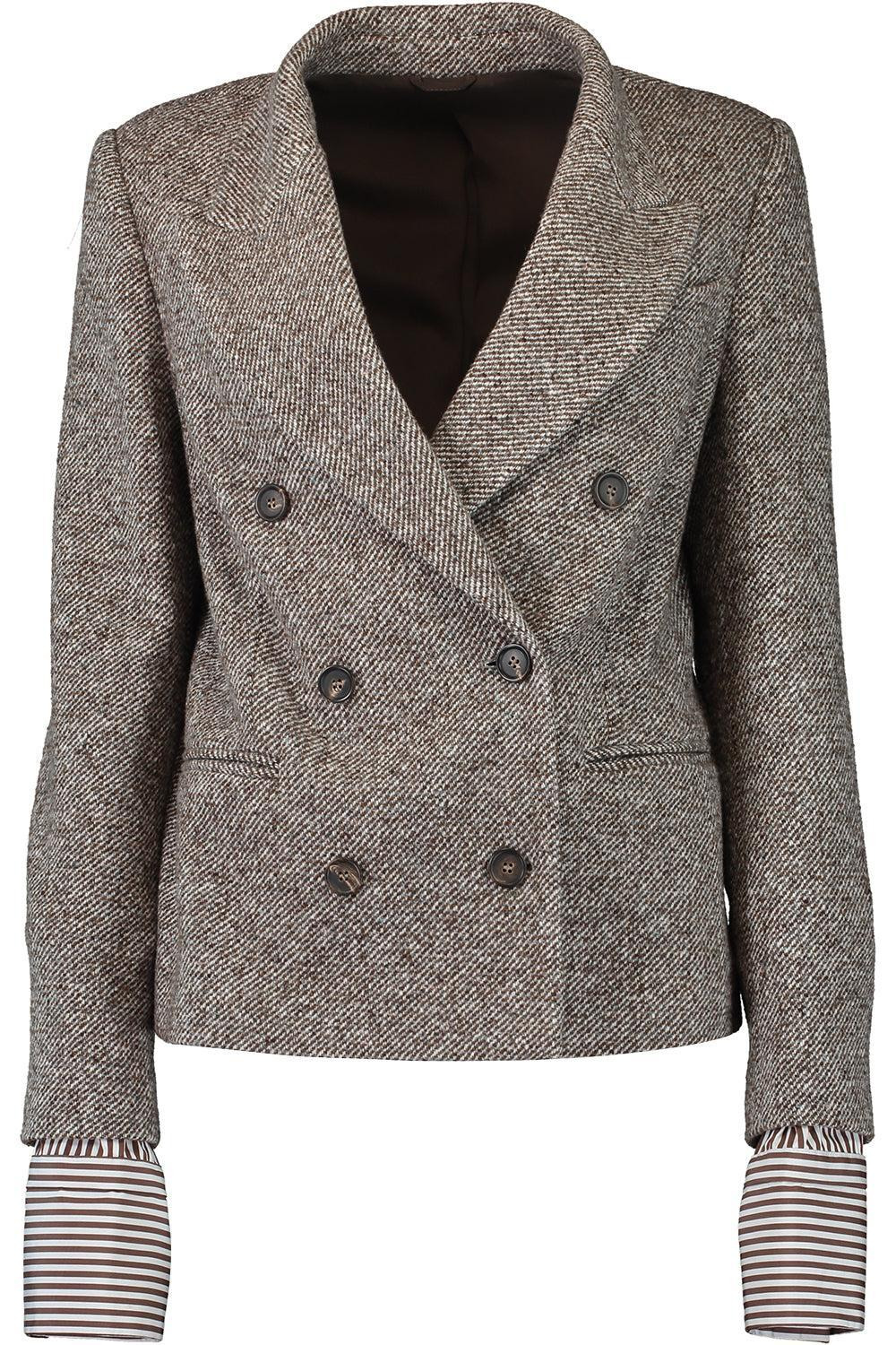 DETAILS AND INSIGHT Brunello Cucinelli diagonal double breasted blazer in brown/grey. Tweed Wool Dry Clean Made in Italy Style MG5317349-C6321