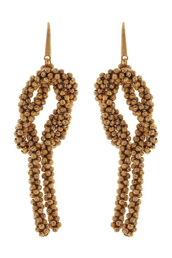 DETAILS AND INSIGHT Brunello Cucinelli knot pyrtite earrings in gold/pink. Style MORW9LA61-C426