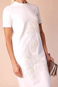 DETAILS AND INSIGHT Brunello Cucinelli magnolia detail dress in naturale. Jersey Dry Clean Made in IT Style ML945A5204-C600