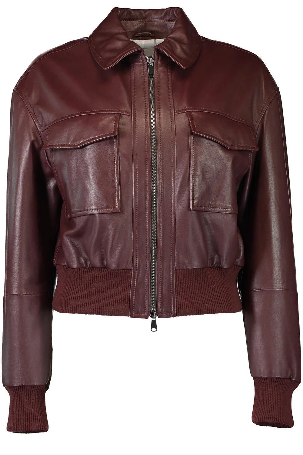 DETAILS AND INSIGHT Brunello Cucinelli nappa bomber jacket in red wine. 100%Le Lamb Ovis Aries Dry Clean Made In Italy Style MPNGP7854P-C4243