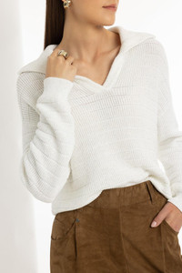 DETAILS AND INSIGHT Brunello Cucinelli pailette english rib collar pullover in white. Cotton Dry Clean Made in Italy Style MDV754005P-CJ159