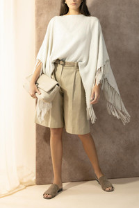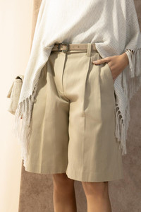 DETAILS AND INSIGHT Brunello Cucinelli pleated bermuda short in sandshell. Hi Rise 76% Co 24% Li, 100% Co, 65% Ac 35% Pl Dry Clean Made In Italy Style ML118P9183-C9195