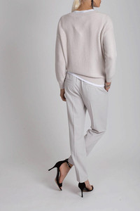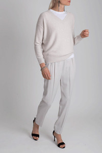 DETAILS AND INSIGHT Brunello Cucinelli Pull On Pant Elastic High Rise Waistline Two Front And Faux Back Pockets With Loose Fitting Silhouette, Ankle Length Cut 55% Viscsoe, 45% Virgin Wool With 68% Acetate, 32% Polyester Lining, Dry Clean Only Made In Italy With Italian Sizing Available In Salt Style MA072P1673-C2076