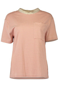 DETAILS AND INSIGHT Brunello Cucinelli round collar striped t-shirt in panama/tangerine. Cotton Dry Clean Made in Italy Style MP928EO420-C7014