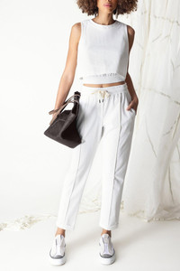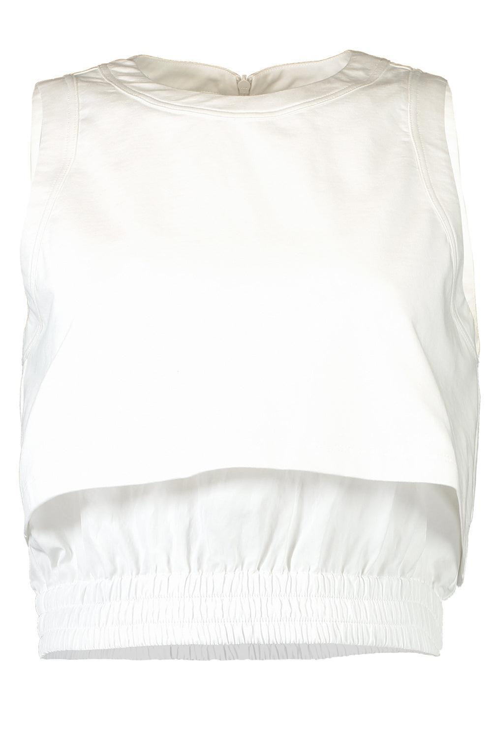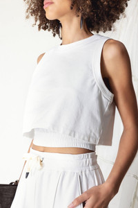 DETAILS AND INSIGHT Brunello Cucinelli travelwear tank in optic white. Light Fleece, Techno Viscose Dry Clean Made in Italy Style MH827VE700-CS787