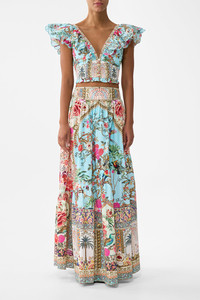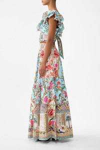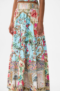 DETAILS AND INSIGHT Camilla shaped seam skirt in sultans and queens. 100% Organic Cotton Dry Clean Made In India Style 00039010-SULTQUEN