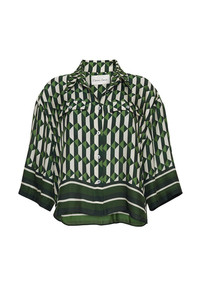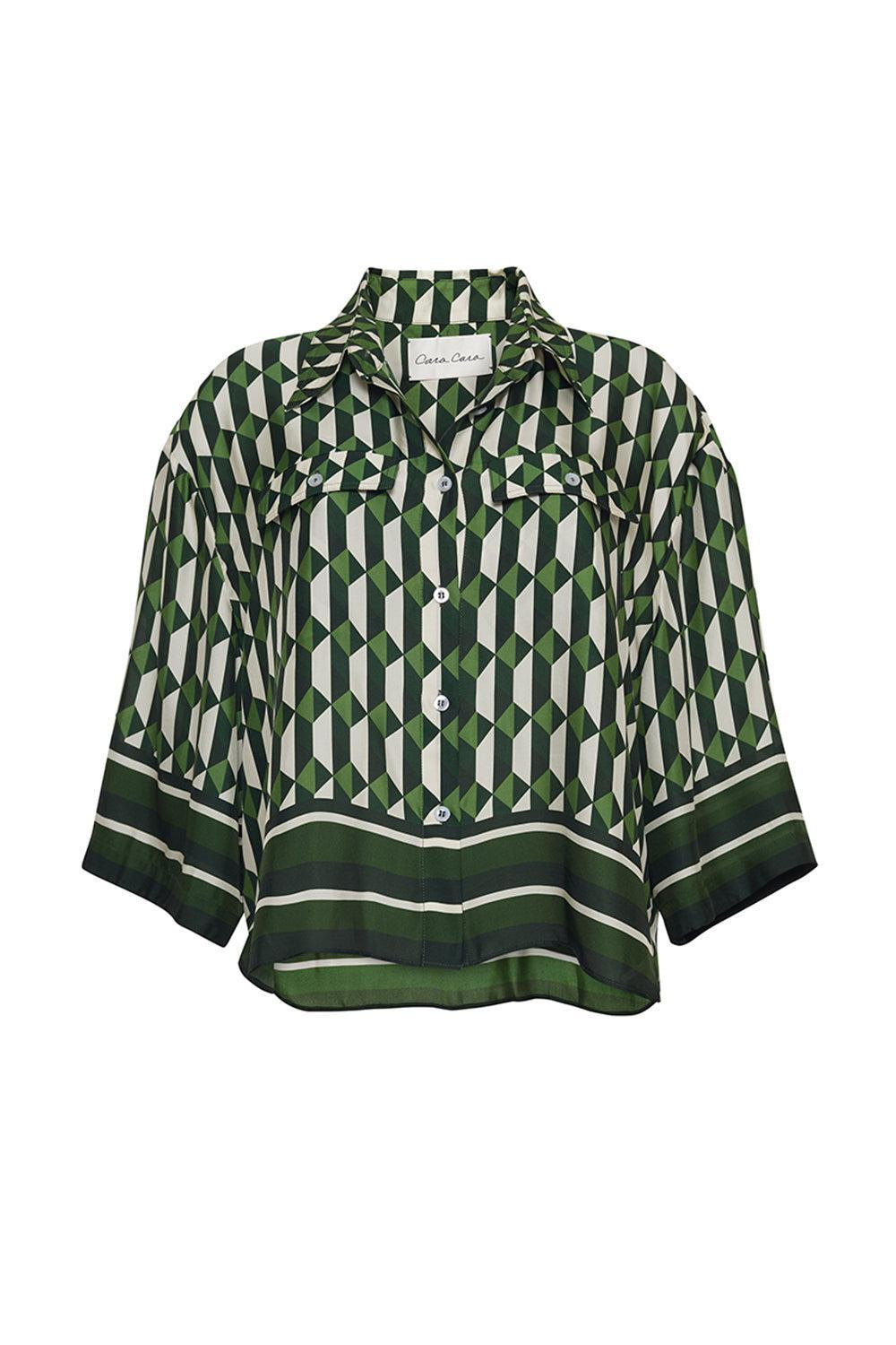 DETAILS AND INSIGHT Cara Cara calvia top in le tile green. 71% Viscose 29% Silk Dry Clean Only Made In China Style 3125SV-LTG