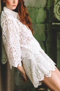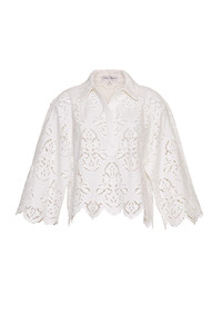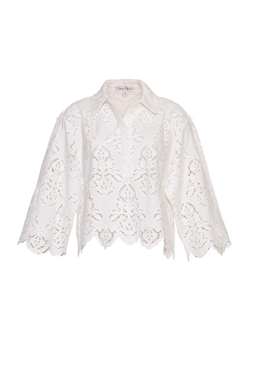 DETAILS AND INSIGHT Cara Cara erica top in white embroidered eyelet. 100% Cotton Dry Clean Only Made In China Style 3054E-EME