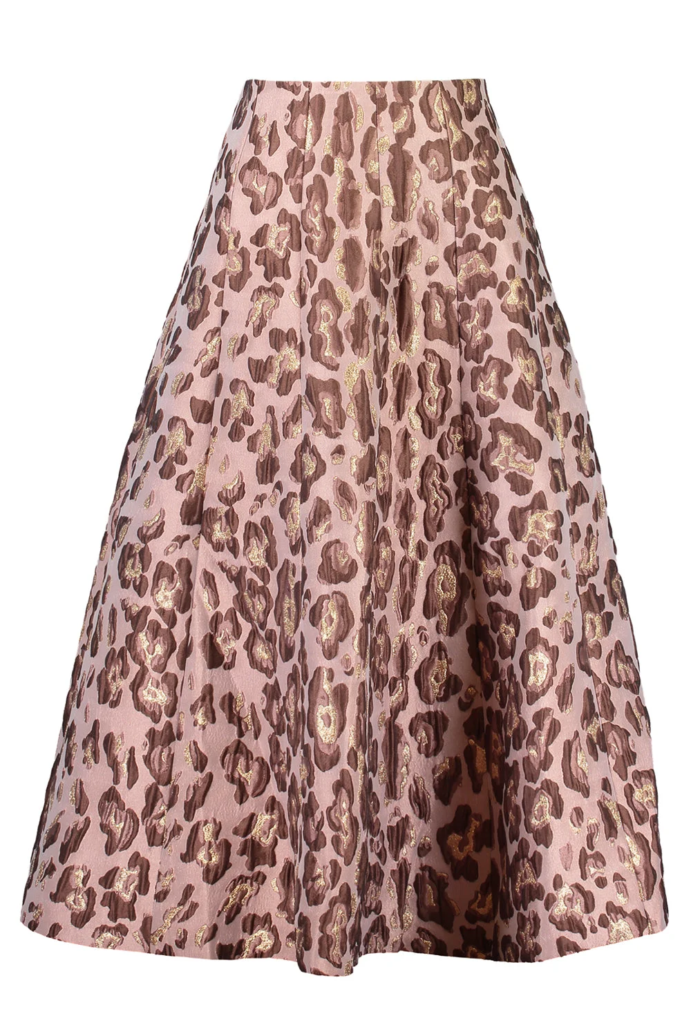 DETAILS AND INSIGHT Cara Cara mimosa skirt in animal blush. 85% Poly 10% Metallic 5% Nylon; 100% Poly Lining Dry Clean Or Hand Wash Cold Made In China Style 281-PAB