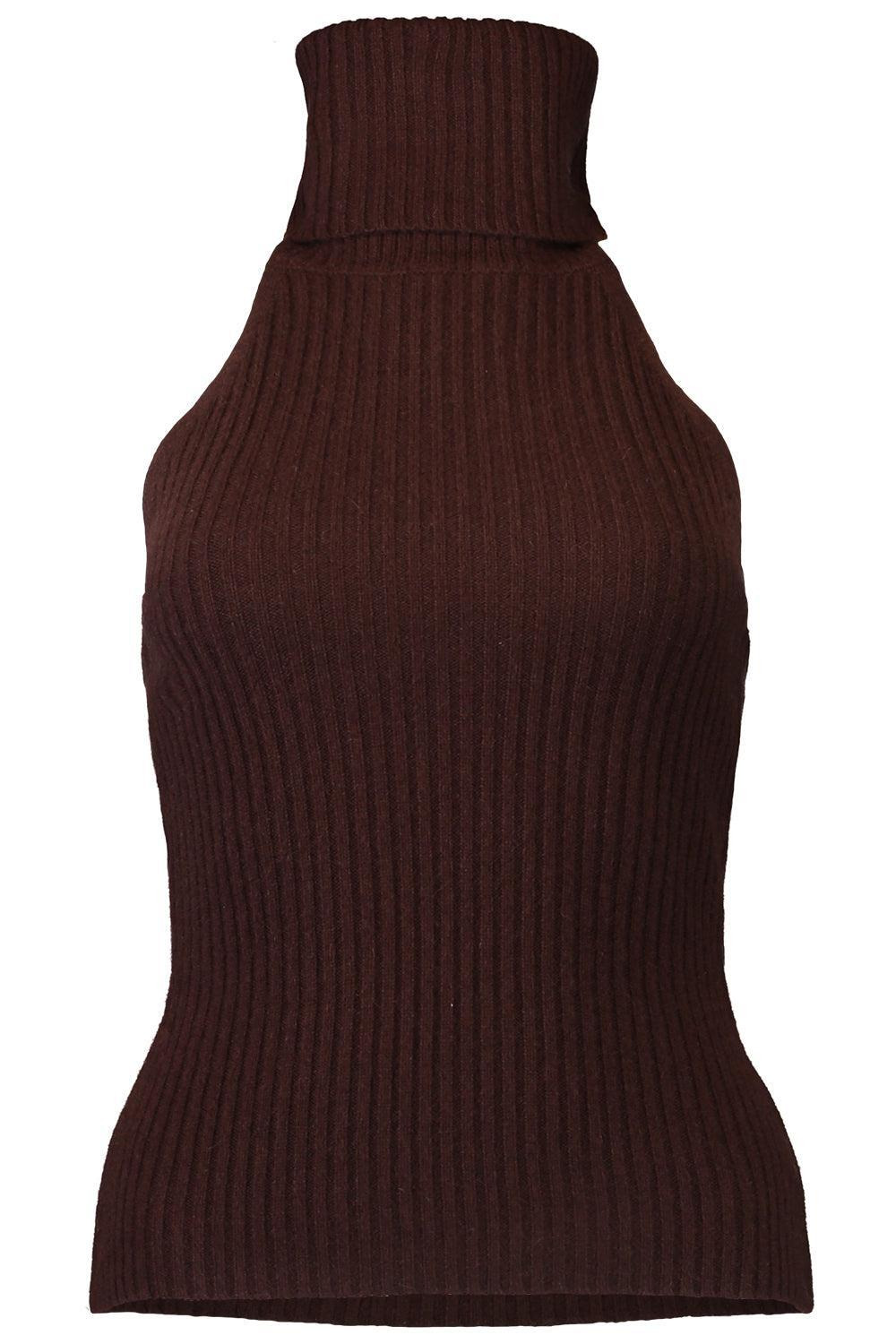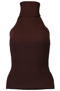 Samson Top Statement Elegance: Form-Fitting Ribbed Knit Halter with an Open Back and Luxurious Overs
