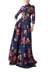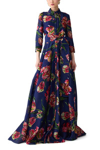 Tulip-Print Trench Gown