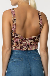 DETAILS AND INSIGHT Chloe cropped front tie tank in maroon/pink. 100% Silk Dry Clean Imported Style CH25UHT25492-6BI