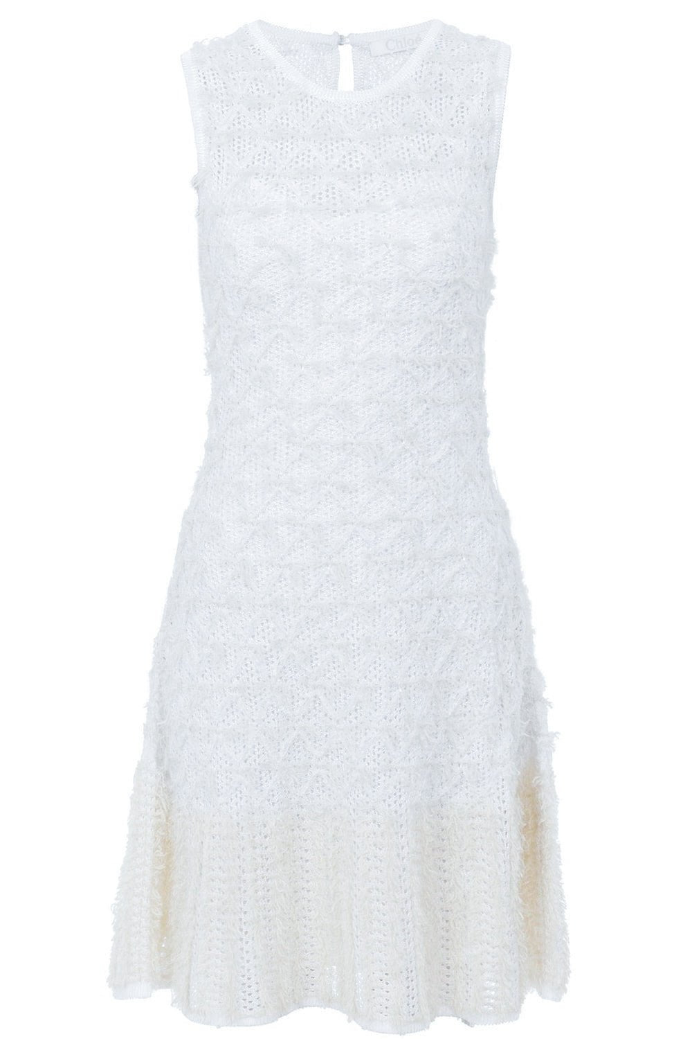 DETAILS AND INSIGHT Chloe flare mini dress in iconic milk. 74% Viscose, 17% Silk, 9% Cashmere; Separate lining: 100% Viscose Dry Clean Made in IT Style CHC24SMR09570-107