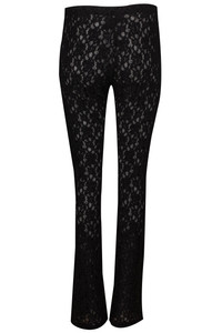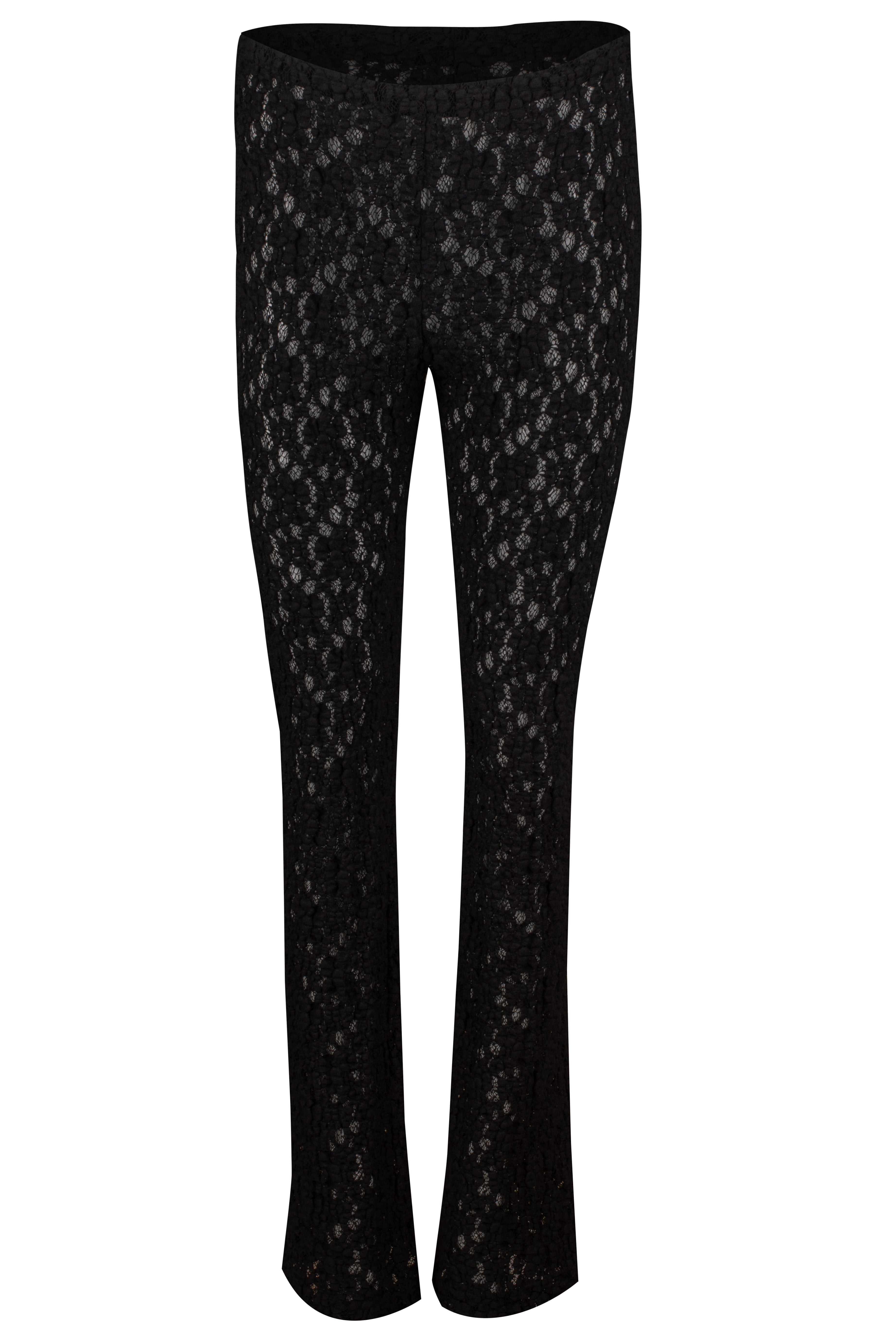 DETAILS AND INSIGHT Chloe lace flare pant in black. Bootcut pants lace: 77% Cotton, 19% Polyamide, 4% Elastane; Inner: 100% Silk Dry Clean Imported Style CHC23WPA09410-BLACK