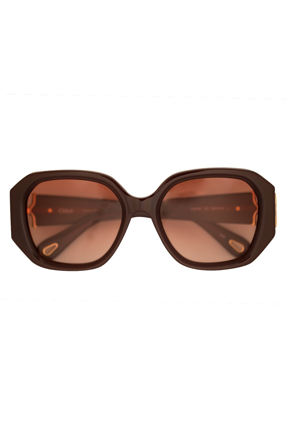 DETAILS AND INSIGHT Chloe marcie sunglasses in burgundy/orange. Acetate, Bio-Based Nylon 100% UVA and UVB protection Lens: 56 mm x Bridge: 19 mm x Temple: 140 mm Imported Style CH0236S-003