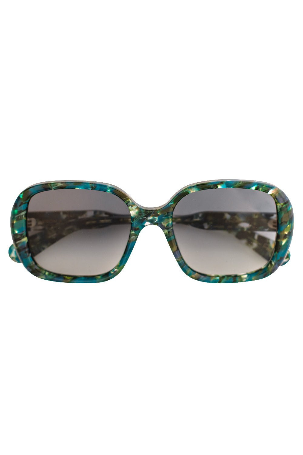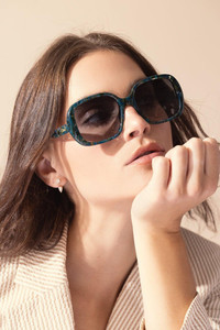 DETAILS AND INSIGHT Chloe patterned square sunglasses in turquoise emerald. Acetate 100% UVA/UVB Protection 55-19-145mm Made in IT Style CH0222S-004