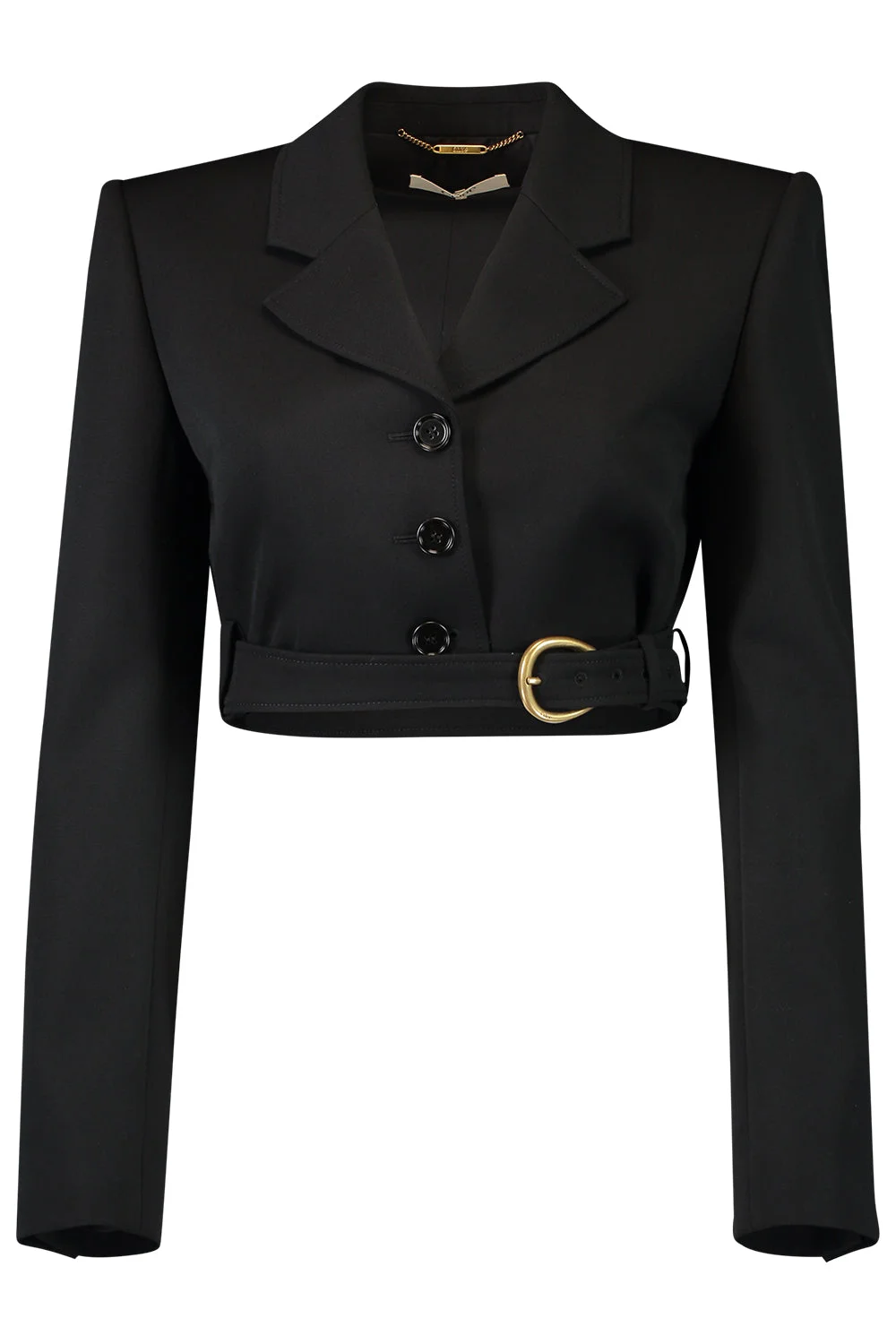 DETAILS AND INSIGHT Chloe spencer crop jacket in black. Single Breast Jacket 100% Wool, Lining: 100% Silk Dry Clean Made In Italy Style CH26SVE71067-001