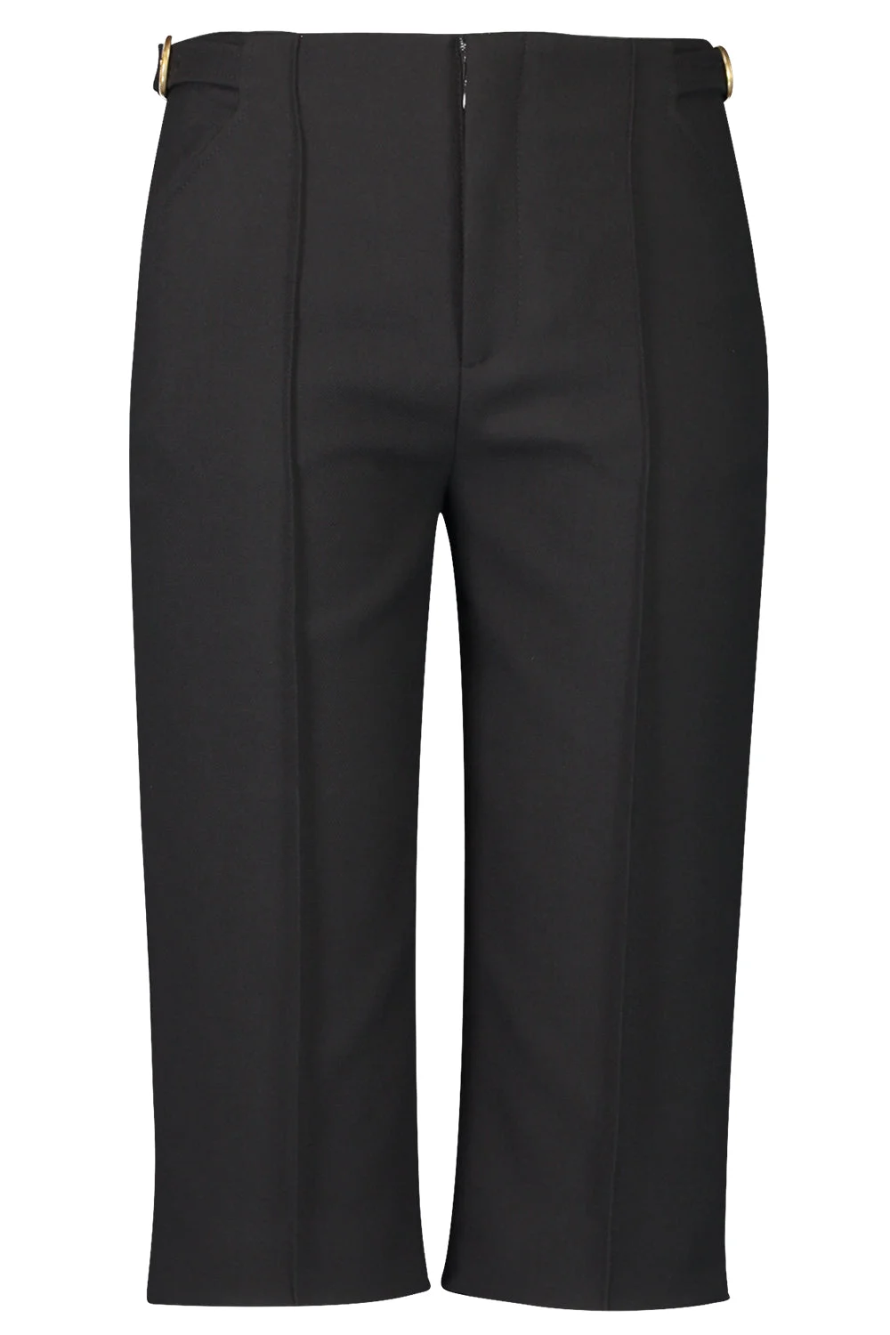 DETAILS AND INSIGHT Chloe tailored capri pant in black. Hi Rise, Slim Crop 100% Wool, Pocket Lining: 100% Cotton Dry Clean Made In Italy Style CH26SPA15061-001