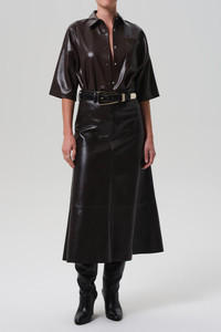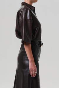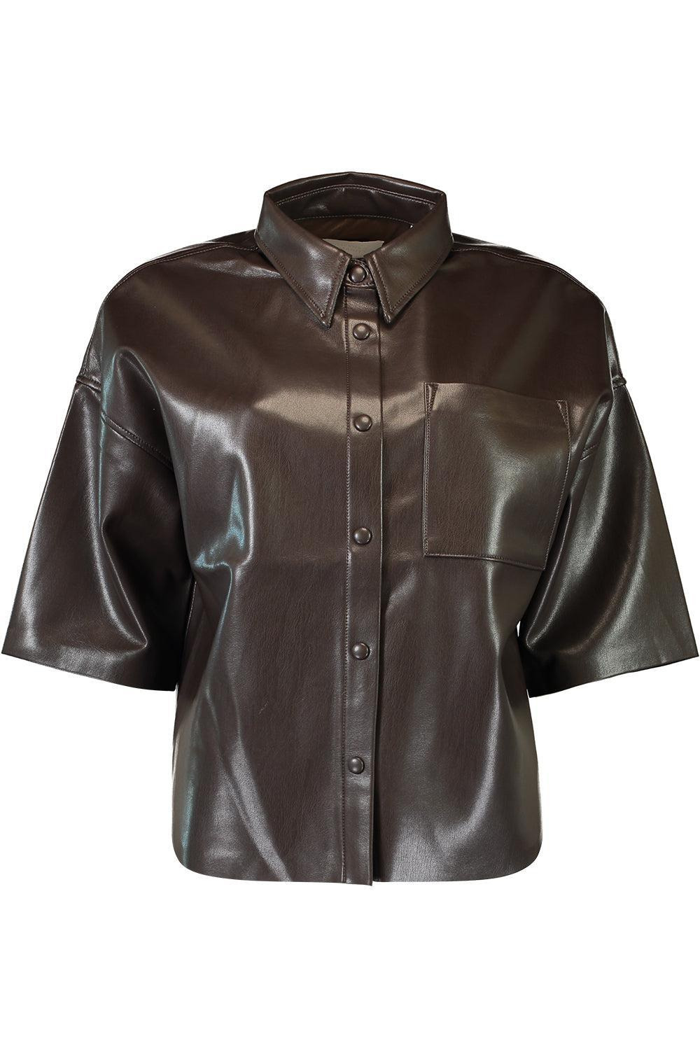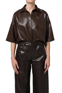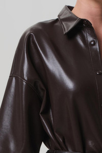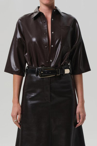 DETAILS AND INSIGHT Citizens Of Humanity frances crop leather button up in chocolate dark brown. Buttery, Faux Leather With Slight Stretch For Ease 55% Bamboo Viscose 45% Polyurethane Machine Wash Cold Inside Out With Like Colors. Do Not Bleach. Tumble Dry Low. Made In Usa Style 9446-3015-CHOCO