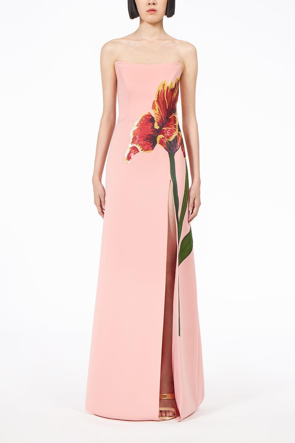 DETAILS AND INSIGHT Costarellos margita strapless gown in make up-red flower. 100% polyester Dry clean only Made in Lithuania Style PS2571-139