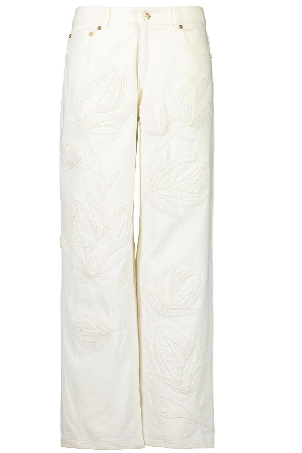 DETAILS AND INSIGHT Cult Gaia flo pant in off white. Cotton Denim Lo Rise, Straight Leg Imported Style PT1155DN2899-OFF WHT