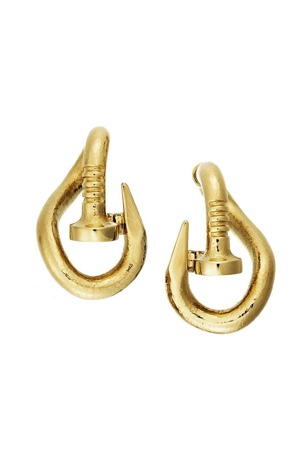 DETAILS AND INSIGHT David Webb bent nail hammered earrings in yellow gold. 18K Hammered Yellow Gold Style N67-23526E