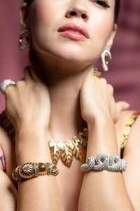 DETAILS AND INSIGHT David Webb curly Q bracelet with brilliant-cut diamonds, 18k gold, and platinum. Diamond (30.7ctw) 18k Yellow Gold Style ES520-07109B