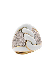 DETAILS AND INSIGHT David Webb diamond white rope ring in yellow gold. 18K Yellow Gold, Platinum, Enamel Diamonds apx. 40/ 1.86 cts Style MS270-32415R